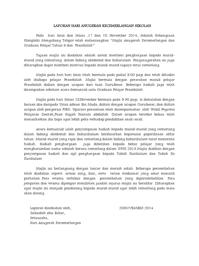 Doc Hari Anugerah Cemerlang Laporan Zubaidah Abu Bakar Academia Edu