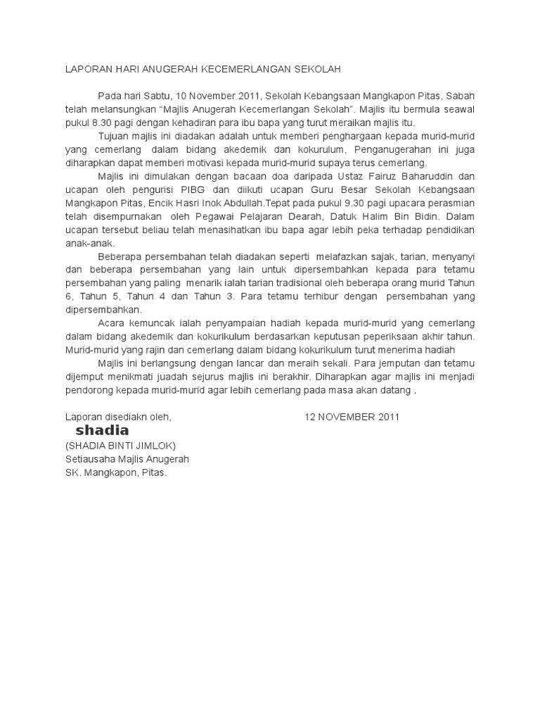 Laporan Hari Anugerah Kecemerlangan Sekolah Pdf